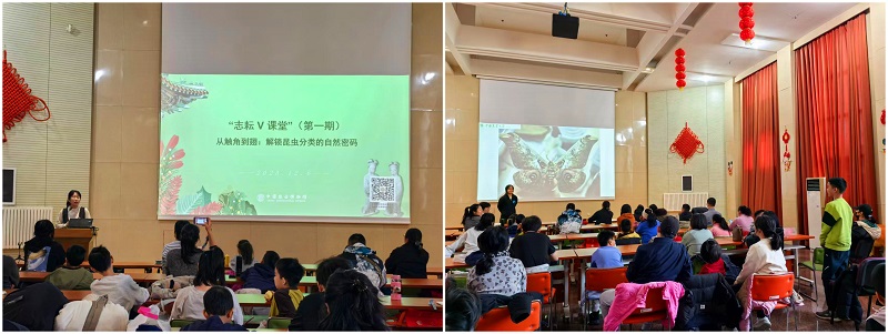 本期课堂以为昆虫分类为主题,由中国农业大学昆虫博物馆志愿讲解员、资深昆虫研究者张之裕主讲。他从昆虫触角、翅膀、足部的形态差异入手,系统阐释分类学逻辑。结合野外昆虫采集拍摄的珍贵照片,真实还原了昆虫栖息环境,使抽象的分类知识变得具体可感。引导观众通过标本观察、特征对比与互动挑战,掌握辨识昆虫的科学方法。