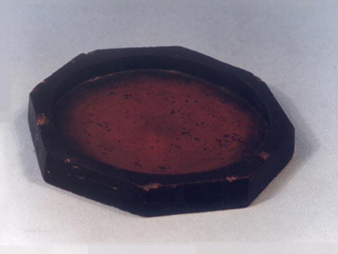 藏品-砚台-跦砂红澄泥砚高1.8厘米 直径16.4厘米