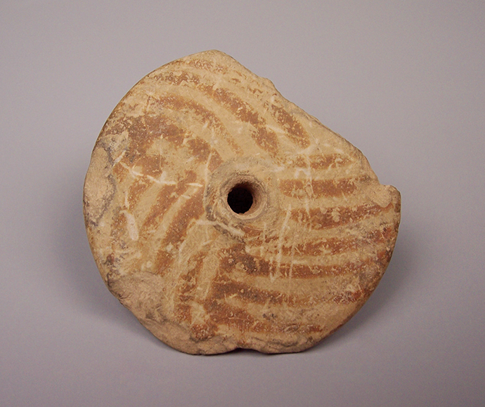 藏品-陶器-彩陶-农耕与编织(编织)-旋纹陶纺轮 仰韶文化类型 直径6厘米
