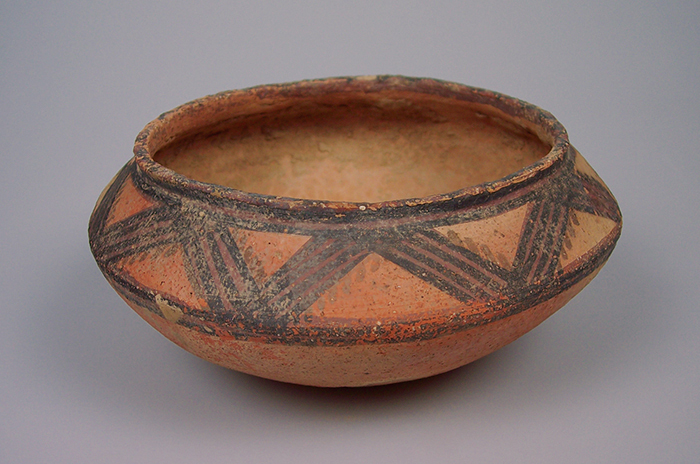 藏品-陶器-彩陶-渔猎与采集(狩猎与畜牧)-蛇纹折带纹钵 辛店文化类型 高7厘米 直径17厘米