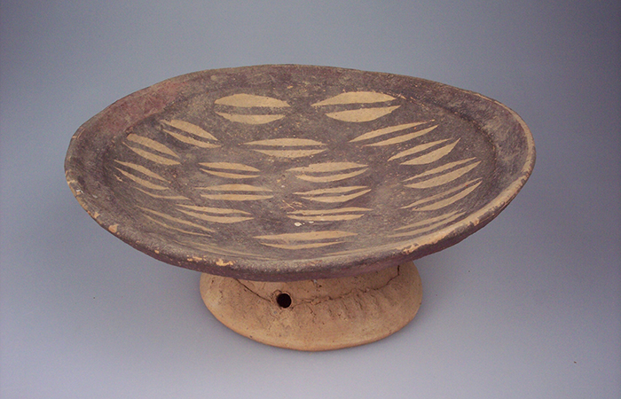 藏品-陶器-彩陶-渔猎与采集(捕捞与结网)-贝纹双孔豆 马厂文化类型 高19厘米 直径17厘米