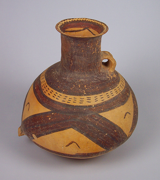 藏品-陶器-彩陶-渔猎与采集(捕捞与结网)-鱼纹宽带纹单鋬单耳壶 马厂文化类型 高25厘米 直径23厘米
