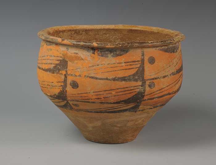 藏品-陶器-彩陶-农业与自然崇拜(鸟禽)-鸟形纹盆 仰韶文化类型 高15厘米 口径17厘米