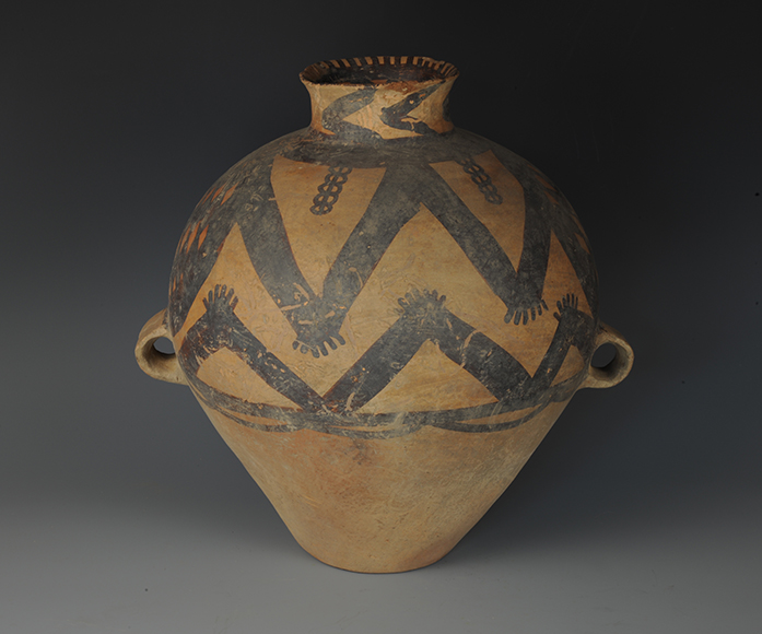 藏品-陶器-彩陶-农业与自然崇拜(神蛙、神人)-神蛙纹贝纹双耳罐 马厂文化类型 高22厘米 腹径24厘米