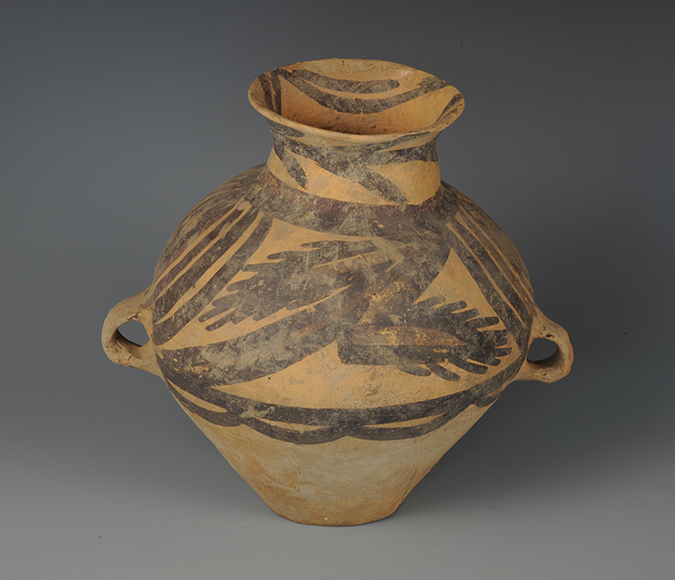 藏品-陶器-彩陶-农业与自然崇拜(神蛙、神人)-肢爪纹双耳罐 马厂文化类型 高21厘米 腹径23厘米
