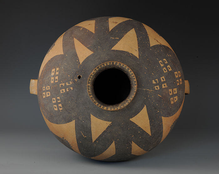 藏品-陶器-彩陶-农业与自然崇拜(神蛙、神人)-变体神人纹双耳罐 马厂文化类型 高39厘米 口径12厘米