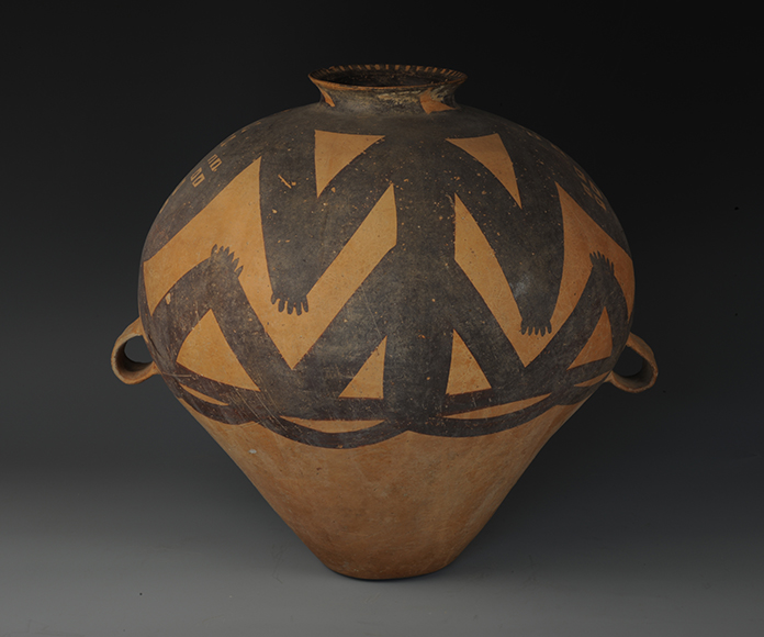 藏品-陶器-彩陶-农业与自然崇拜(神蛙、神人)-变体神人纹双耳罐 马厂文化类型 高39厘米 口径12厘米