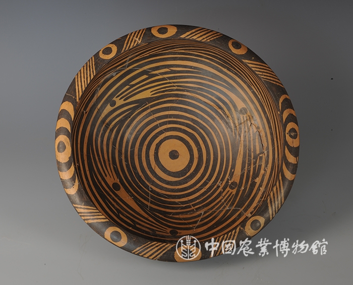 藏品-陶器-彩陶-农业与自然崇拜(河水)-水波纹圈点纹盆 马家窑文化类型 高11厘米 口径19厘米