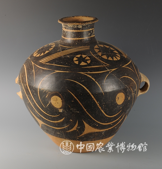 藏品-陶器-彩陶-农业与自然崇拜(太阳)-太阳纹涡纹双耳罐 马家窑文化类型 高40厘米 腹径40厘米