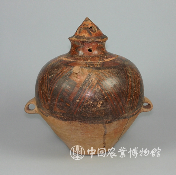 藏品-陶器-彩陶-储藏器-折线纹尖顶盖双耳罐