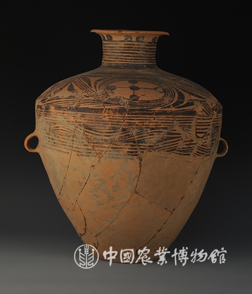 藏品-陶器-彩陶-储藏器-涡纹十字五点纹双耳壶马家窑文化类型 高54厘米 口径19厘米