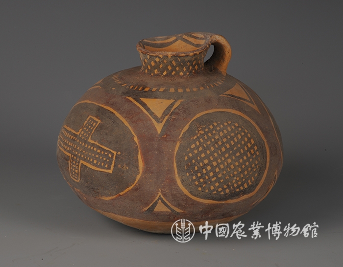 藏品-陶器-彩陶-用水器-四大圈十字纹网纹单耳壶