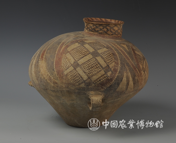 藏品-陶器-彩陶-用水器-四大圈网格纹鸟形壶半山文化类型 高23厘米 腹径28厘米