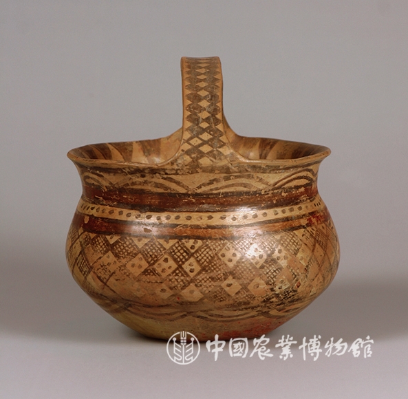 藏品-陶器-彩陶-盛食器-菱格纹网纹点纹提梁罐