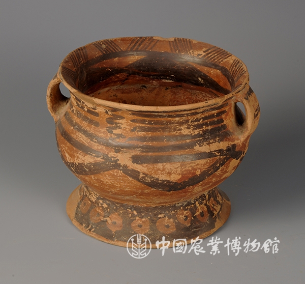 中国农业博物馆藏品-陶器-彩陶-盛食器-带纹连珠纹盘底双耳罐