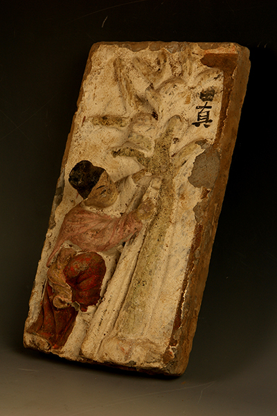 藏品-陶器-陶明器-画像砖-田真彩绘浮雕砖