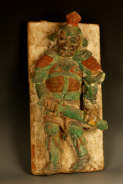 藏品-陶器-陶明器-画像砖-武士彩绘浮雕砖