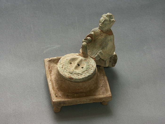 藏品-陶器-陶明器-单色釉陶明器-褐釉陶推磨俑
