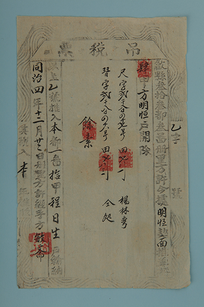 藏品-农业税票-同治4年吊税票