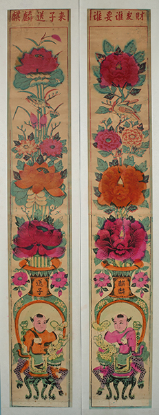 藏品-高密年画-麒麟送子来谁要谁发财条屏 20世纪50年代末 长147厘米 宽27厘米