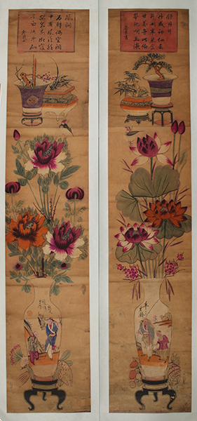 藏品-高密年画-花开富贵牡丹屏民国时期 长140厘米 宽39厘米