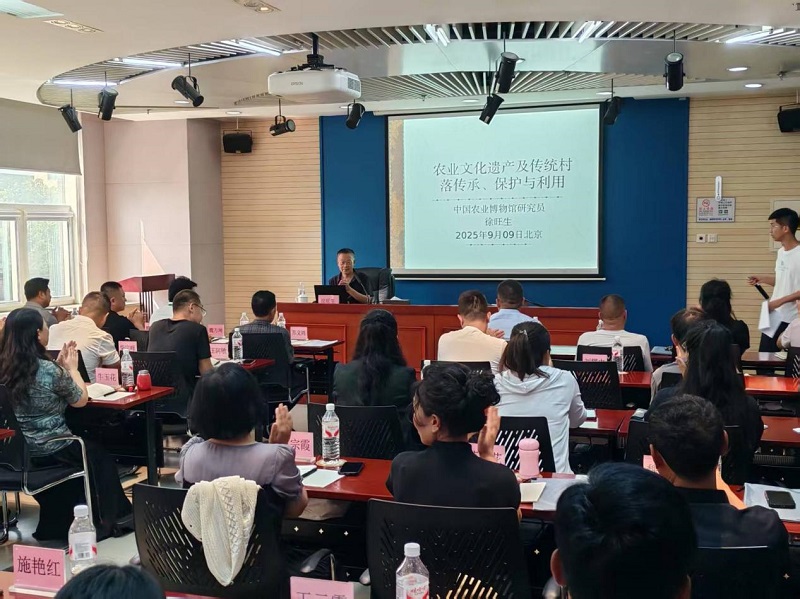 9月9日,中国农业博物馆研究馆员徐旺生以《农业文化遗产及传统村落传承、保护与利用》为题,为2025年兰州市市直乡土文化能人培训班学员授课。培训班于9月5日至15日在农业农村部管理干部学院举办,50余名学员参加培训。