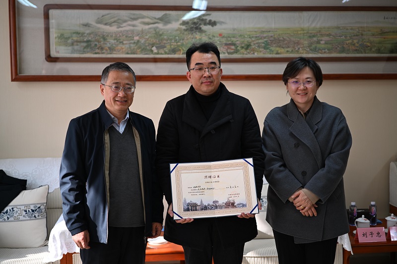 中国农业博物馆党委书记刘子忠出席仪式,并向天津市非遗项目葫芦烙画技艺传承人王金啟先生颁发捐赠证书。随后,刘子忠与带队前来的天津市宝坻区文旅局党委书记、局长巩慧就双方在非遗传承及农产品展销领域开展合作进行了深入探讨并初步达成一致意见。