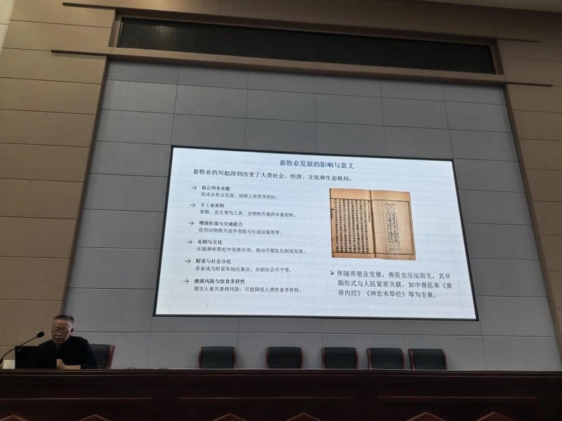 12月8日,中国农业博物馆研究馆员、农业农村部全球重要农业文化遗产专家委员会委员徐旺生应邀赴中国农业大学动物科学技术学院,以“六畜兴旺——中国畜牧业历史与文化”为题作专题报告,带领现场师生跨越时空,系统梳理中国畜牧业的起源、发展脉络与文化内涵。